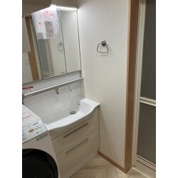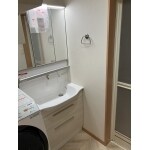 洗面台のシャワーホースから水漏れが発生するようになってしまったため、リフォームを検討しているとのことでご連絡いただきました。 また、クロスの剥がれや前の居住者がつけていたタオルラックの跡があるため内装の張り替えもご希望とのことでした。 掃除がしやすいものがご希望でした。