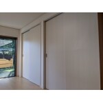 写真右の引き違い戸は特注寸法で天井まである建具にしました。 正面の建具は前回工事の新しい建具です。