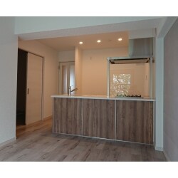 キッチン周りの壁を全て解体して、オープンキッチン(ペニンシュラ)タイプに変えてしまいましょうとご提案しました。 とても素敵な空間に生まれ変わったと思います。
