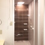 ドアは、浴室側への片開きドアになっていました。開き戸は開けるときにスペースが必要になるので浴室空間が狭まります。入浴中も意外とドアの開閉が多く、不便を感じるところでした。