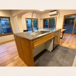 初めオールステンレスキッチンをご希望でしたが、現状の木の温もりのある雰囲気を生かしたいと思いました。その雰囲気に調和し、更にお洒落に使いやすさを求め提案したのが、無垢の木のキッチン、ウッドワンのスイージ―でした。このキッチンは、“木を感じる暮らしを。”を製品開発のコンセプトにして開発された無垢の木スイージーに、新素材のワークトップを採用した特別仕様の商品になります。また、デザイン性に優れたスクエア形状のシロッコファンレンジフードと、同じくスクエア形状のステンレスシンク、お洒落なSUTTOシャワー水栓、最近流行の海外製食洗機:ミーレ社製ステンレス食洗器を導入しました。こだわりとセンスが詰まったアイテムを上手に組み込み、実用性にもこだわりました。それぞれの個性が活かし合えるデザインになるよう、配置・お色選びなど、一緒にお話し合いさせて頂き、トータルコーディネートさせていただきました。そして、期日にも間に合わせることが出来ました。毎日のお料理を、自然の温もりを感じられる中で楽しみ、家族みんなのくつろぎと癒しの、ご自慢の空間になるよう、お手伝いさせていただきました。