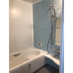 洗面も浴室内もタイル貼りで寒い印象もありましたので、さわやかなカラーの浴室にすることで明るい印象は損なわず清潔感もプラスした浴室に致しました。