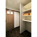 稼働レールで調整できる棚を造作、パントリースペースもできました。