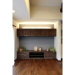 天井までの収納があったところにテレビボードを設置して空間を広げたい。