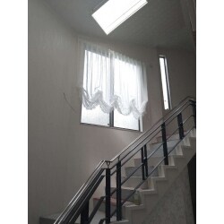 高所の階段という不安定な場所のため、慎重に作業を行いカーテンを設置しました。