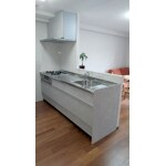 正面に棚を設けたお洒落なI型キッチン