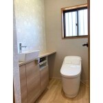 トイレ内の天井、壁、床クッションフロアを張替え、小窓もLIXILの内窓インプランスにリフォームしました。またLIXILのプレアスLSはふちレスの形状は掃除が簡単に出来るようになりました。