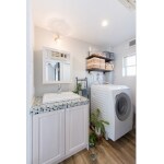洗面化粧台サイズダウンとトールキャビネットで収納たっぷり