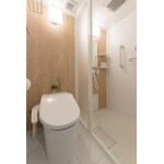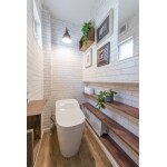 トイレの向きを90度変えて、限られたスペース内でもゆったりとくつろげるようなインテリア性あるトイレをご提案。