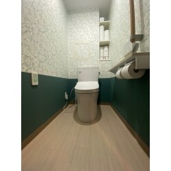 ウォシュレットの故障をきっかけにTOTOピュアレストQRにリフォームしました。 セフィオンテクトの便器で汚れをするっと洗い流してくれるため、お掃除が簡単になります。 存在感のあった大きな袖リモコンから、壁リモコンへの変更で見た目がスッキリしました。従来品より凹凸の少ないデザインのウォシュレットでホコリや汚れも溜まりにくくなりました。 シンプルな内装から雰囲気を変えたいと花柄×グリーンでコーディネートしました。 エレガントな花柄のクロスをどのように施工するかお悩みでしたが、圧迫感がでないように上下に貼り分けることを提案。下半分にシンプルなクロスを施工することで、上半分のクロスの華やかさがより一層際立ちます。