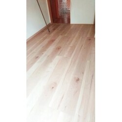 玄関ホールに現在お使いのフローリングと質感を揃えたいとのご要望でしたが 同じ商品が廃盤になっていたため、 似たような木目がはっきりしているフローリングを探してご提案させていただきました