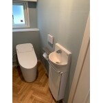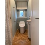 ヘリンボーンとブルーグレーの北欧風トイレが完成しました