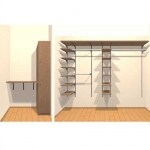 ご依頼いただきありがとうございました。お洋服から、バック・帽子・服飾アクセサリ―など、こまごまとしたものは特に年々増えてゆくものですが、せっかく使おうと思っても、どこにしまったか分からなくなってしまうのはもったいないですね。すっきり分かりやすく、出し入れしやすい収納を希望されておられたお客様に、アパレルディスプレイの展示や陳列の合理性に着目して、収納棚の配置やハンガーポールの設置をご提案させていただきました。洋服だけではなく、バッグ・帽子・アクセサリーなどの服飾雑貨のアパレルディスプレイに見られる陳列や装飾は、整った清潔感、すっきりとした分かりやすい配置など陳列の工夫が詰まっています。移動や組み換えがしやすいフレキシブルなレイアウトも参考にさせて頂き、お客様の使用に合わせ、棚板の幅、高さ、長さを綿密に計算させていただきました。お客様のイメージが湧きやすいようパース図からご説明させていただきました。間口を広く取って、一目で物の配置が見やすく出し入れしやすくなるように扉は上吊3枚引違い戸を採用致しました。