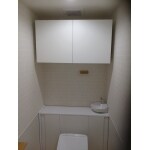 以前設置されていたメディスンボックスは撤去し吊戸棚を設置してスッキリスペースになりました。中身を見せないで収納できるのでスッキリした印象です。