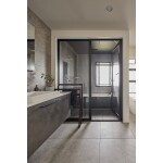 ・床、壁をタイル張りにし、リゾートホテルのような雰囲気を演出 ・洗面とトイレを一体化したホテルライクなサニタリースペース