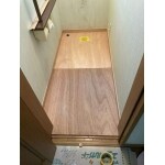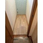 床の表面は色褪せ等の傷みがありましたが、下地は傷んでいないのではないかとの判断と、ご予算も考えて、床の上貼りでご提案させていただきました。床の上貼りで段差が出来てしまうことも了承していただき、綺麗な仕上がりになりました。