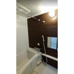 器具面にシックな木目調のアクセントパネルをご採用いただきました。 浴室乾燥機付きなので、寒い冬も快適に入浴できます。
