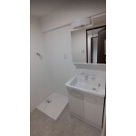 洗面台は同じ間口のタイプでご用意させていただきました。 不要な棚などは撤去し、古い分電盤も新しく交換いたしました。