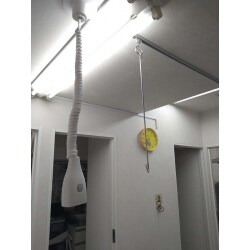 手術台の上にリードコード(伸びたり縮んだりするコード)及び点滴レールの新設をしました。 電源は天井の蛍光灯から取っています。 点滴レールはTOSO(トーソー)の「メディカライト」及び「点滴ランナー」という部品を使用しました。