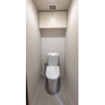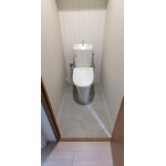 2種類のクロスで遊び心のあるワインセラーのようなトイレ空間