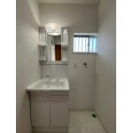 洗面化粧台を取り付けました。 全体的に白を基調としている為、明るく清潔感あふれる洗面スペースとなっております。 洗面器・鏡も大きく、収納もたくさんあるので使い勝手も良いです。