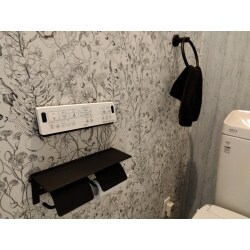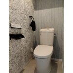 トイレは壁一面白色でありシンプルな雰囲気でした。小物などを置くと隙間などに溜まったホコリの掃除などを定期的に行わないといけませんでした。壁紙を模様の入ったものにすることでお掃除の手間を少しでも減らしつつ、おしゃれな雰囲気のあるトイレにしたいです。トイレも機能性を少しでも上げ、今後長く使えるようなものを選びたいです。とのご要望でした。