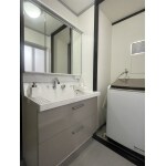 519.収納力アップ、スッキリと明るい内装の洗面室。