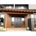 黒のサイディング、アクセントで木目のサイディングを使い、まとまりのある雰囲気に仕上がりました。