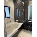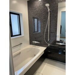 黒のアクセントパネルが素敵な高級感のある浴室になりました。 浴室・浴槽でくつろぐことを前提に作られたものなので広々リラックスして日々の疲れを癒すことができます。