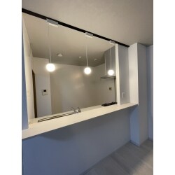 571.アクセントパネルとランプで明るく華やかな浴室