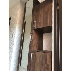 ドア近くの梁が邪魔して背が高い下駄箱を置けない為、左上のスペースを使用できずデッドスペースになっていました。