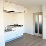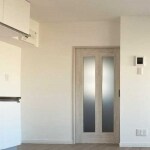 一旦、お部屋をスケルトン状にし、給水給湯配管を更新して床面に組み替えました。ベランダに繋がっていた配管は撤去し、新しく設置した洗濯機置場と3点ユニットバスに繋ぎました。賃貸用のシステムキッチンに、ワンドのハイトップ組合せ型流し台(一槽流し台 間口90cm)をご提案させていただきました。背面はタイルをやめ、油汚れなどさっとひと拭きのパネルにいたしました。メラミン不燃化粧板で、硬度・強度・耐熱性・耐磨耗性に優れた不燃化粧材です。床材はCFからフローリングにいたしました。ベリティス製フロアーダブルコートで、乾拭きお手入れで表面の光沢が長持ちし、汚れや傷が付きにくい素材です。建具もベリティス製でコーディネイトし、お部屋全体の統一感の中に優しい穏やかな表情のグレージュで包み込んだ、幅広い年齢層の方が、いつまでも住みたいと思えるお部屋にデザインしました。