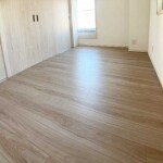 一番くつろげる場所となるリビングダイニングは、これから借りたいと思われる方に、良い住空間のイメージを伝えたい場所でもあります。そこでまずお部屋の雰囲気を決定する床材の色と素材選びに注目しました。今回採用したベリティスフロアーのグレーとベージュを調和良く合わせたグレージュヒッコリー柄は、家具や建具の色々なカラーに合わせやすく、暮らしの変化にとても馴染みやすい色合いになっていて、厚み1.5ミリと薄いながら、擦り傷やへこみ傷に強く、表面の光沢が長持ちするフローリングで、大変お得な価格帯になっています。建具も同じベリティスの建具と合わせて空間の調和を図りました。どの年齢層にも好まれる暖かで落ち着いた品のあるお部屋が演出出来ました。水廻りの生活導線にも気を配り、設計をご提案させていただきました。ダイニングキッチンにトイレ・浴室が隣接していると使用時の音漏れが気になるところです。それを解消するため、お部屋との間に置いた洗濯機置場兼脱衣室でワンクッション挟まれ、お客様がいらしても音漏れに気兼ねすることなく快適に過ごせるリビングダイニングになりました。