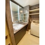 ボウルのひびや清掃面をきっかけに、洗面所のリフォームを承りました。 LIXILのルミシスは、デザイン性や使い勝手にとことんこだわりたいという方へおすすめの選べる幅が豊富な商品です。 洗濯機に干渉しない扉を考え、カウンターよりも収納の横幅をコンパクトに。 カウンターは「ラピシアロックグレー」で、リアルな石目が表現されています。 タッチレス水栓に加え、スイッチもタッチレスに。3段階の調整が可能です。 内装は、ホーロー素材が心強いエマウォールを施工。傷や汚れだけでなく湿気にも強い、水廻りには安心の内装材です。 磁石もくっつくため、収納やインテリアの幅が広がります。