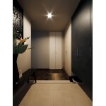 収納充実。扉と床の色を変えて、大人っぽい玄関に大変身!