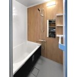 木目柄のアクセントパネルが映える高級感溢れる浴室に!