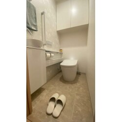 お家にご友人などが来られた際に、キレイなトイレを使って欲しいという思いからリフォームのご依頼を頂きました。 タンクレスでスッキリとした印象に変えたいというご希望から、TOTOネオレストLS2を提案。便器内はもちろん便器裏先端にも除菌水を吹きかけ、汚れを漂白・除菌しキレイな状態を保ってくれます。 手洗い器の位置に不便さを感じていたため、入って左側に設置。タッチレス水栓で水栓を汚すことなく衛生的に手を洗えます。 内装では、施主様お気に入りのリーフ柄やお花柄がかわいいアクセントクロスが映えるように、周辺クロスはホワイトを選択。「オシャレな空間になり、トイレに入るのが楽しみ」とお喜び頂けました。