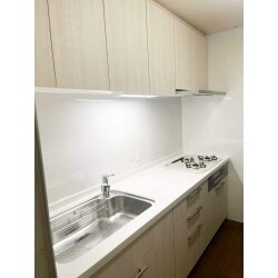 L社のシエラI型を設置致しました。 清掃性と収納の出し入れのしやすさにこだわって、仕様選択しており、ワークトップは人工大理石仕様、ウォールキャビネットはダウンウォール付になっています。