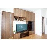 造り付けのテレビボードをご検討されているということで、S様と一緒にメーカーショールームへ行きました。 お部屋の雰囲気に合わせ、EIDAIのテレビボードをご注文いただきました。オーダーならではのジャストサイズの収まりとなりました。 テレビボードすぐ横の建具も、当初予定していた他メーカーからEIDAIのものへ変更いたしました。 テレビボードと建具のメーカーを統一することで、一体感が生まれとても素敵な空間となりました。 また、工事中に「購入を検討しているソファーがあり、サイズが大きいけど入れられませんか?」とご相談いただきました。 リビングとダイニングの間に作成する収納の奥行を可能な限り狭めることで、収納までの動線を確保することができました。 打ち合わせから現場管理までが同じスタッフだからこそ、工事中でもご相談していただけたのかと思います。