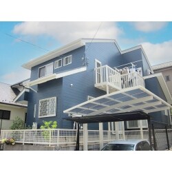 外壁の色は新築と似た色で、更に夏場が暑いとの事で遮熱塗料を希望されました。 また、ワンちゃんの遊び場の為に庭に人工デッキを設置してほしいとのご希望がありました。