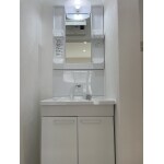 明るいイメージで、フルスライド収納を備えた洗面台で快適!