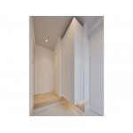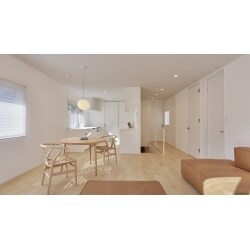 耐震強度を考慮し、構造壁の撤去可否を確認しながら間取り変更の計画をしています。断熱材は交換、内窓設置や窓交換もおこない、温熱性能を向上させています。特に2階の暑さ軽減のため、小屋裏換気を取り入れました。子世帯の内装は白色のスッキリとしたデザインを追求。 水廻り・建具・クロス・玄関タイル等の大きな物から、窓台・リモコン・ 照明台座等の細かな物まで、1つ1つ「白」にこだわり、簡潔なデザインを厳選していきました。建具は全てハイドアを選定。階段手摺りはアイアンの造作とし、最小限の桟で製作しています。照明は全部屋ダウンライトとペンダントのみで設計。これらの積み重ねにより、明るく開放感のある空間が実現しました。
