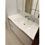 既存の洗面鏡をそのままで、下台だけTA社のリジャストに交換いたしました。 下台交換のみにすることで収納力と清掃性はアップ。費用面は洗面一式より抑えられます。