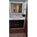 | その他採用機器・設備 | 5年保証/メディシンボックス撤去開口塞ぎ含む/ダウンライト撤去壁造作工事※三面鏡設置用/電源工事/スイッチ組替 /クロス張替(壁4面+天井)/クッションフロア張替(ソフト巾木あり)/ペーパータオルボックス交換工事/タオル掛け交換工事 |