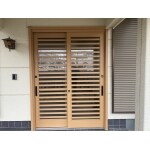玄関の引戸が経年劣化で外観の見栄えが悪くなった。引戸の鍵のかかりが悪くなったので、これを機に防犯性の高いものに変えたい。デザインもできればアルミの単色ではなく木目調で明るくなることを希望します。最近では断熱性のある玄関引戸もあるようなので、この地域に合った断熱性能で提案してほしい。現在あるランマはなくても構わない。