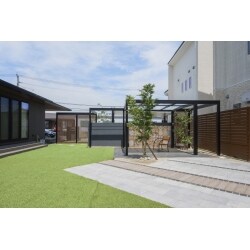 お庭で過ごす際の視線が気になっていたのでご相談しました。デザイン性のあるウォールやフレームを施工したことで、視線を気にせずくつろげる庭になりました。