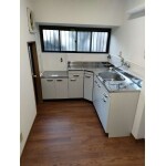 壁と天井のクロスを貼り、床のクッションフロアは上張りしました。流し台は新しく入れ替え、入居される方が気持ちよく使えるキッチンへ。