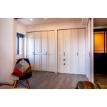 お施主様の希望を実現させるために、フローリング・内装・和室を、ひとつの広いLDKへリフォームするプランを提案いたしました。 開閉壁を設置し、普段は開けて広い空間として、来客時には間仕切りとして使うことができます。 ご主人の趣味が幅広く、アウトドアグッズなどが充実しているため、もともとの収納スペースよりも1mほど伸ばしました。 趣味の物が全て収納でき、カヌーのパドルが置けるように棚の高さも調整しました。 デザイン提案や間取りなど提案させていただきましたが、お施主様のお好みのインテリアを配置したことによって、私たちの想像を遥かに上回る住まいが完成しました。