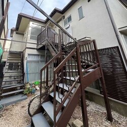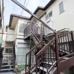 木造モルタル建てのため、白蟻被害も気になる要素が見受けられました。201号室・202号室それぞれに至る外階段があり、鉄部やモルタル部の劣化が進んでいました。