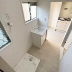玄関入ってすぐ横に洗濯機置場が設置されていました。左奥は3点ユニットバスになっています。